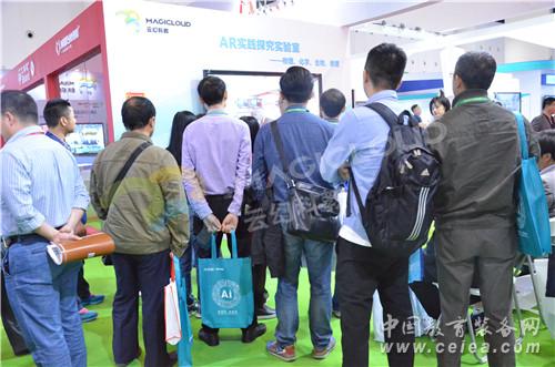 本屆展會展示了展出來自我國以及美國、日本、韓國、英國、德國、丹麥、瑞士、比利時、伊朗等國家的1485家參展商帶來的近22000件教育裝備產品,展覽內容豐富,展示產品基本涵蓋了整個教育裝備領域,有以智慧教室、智慧校園為概念的產品,也有人工智能、穿戴設備、物聯網等創新產品。而且,本屆展會展出的產品科技含量為歷屆最高,共計168家國家級高新技術企業和26家雙軟認證企業參展,其中部分高新技術企業的產品為全球領先甚至全球唯一。云幻科教全球首家AR實踐探究實驗室產品亮相展示會,為教育創新再填新產品。