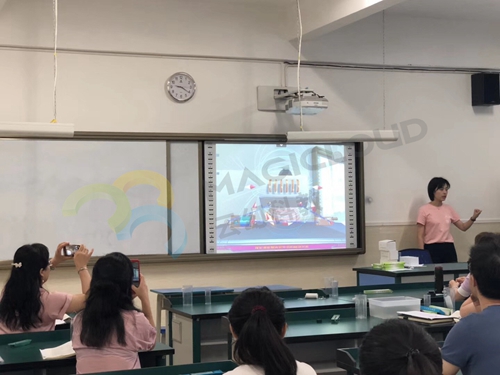 5月23日,云幻科教講師為深圳中學(xué)龍崗初級中學(xué)的老師們進(jìn)行了一場AR教學(xué)應(yīng)用培訓(xùn),講述了軟件的操作方法、教學(xué)應(yīng)用等等,同時(shí)還與在校老師進(jìn)行了深入的交流,從虛擬素材的展示形式到教學(xué)中如何更好的應(yīng)用,開展了一場深度的思維碰撞。