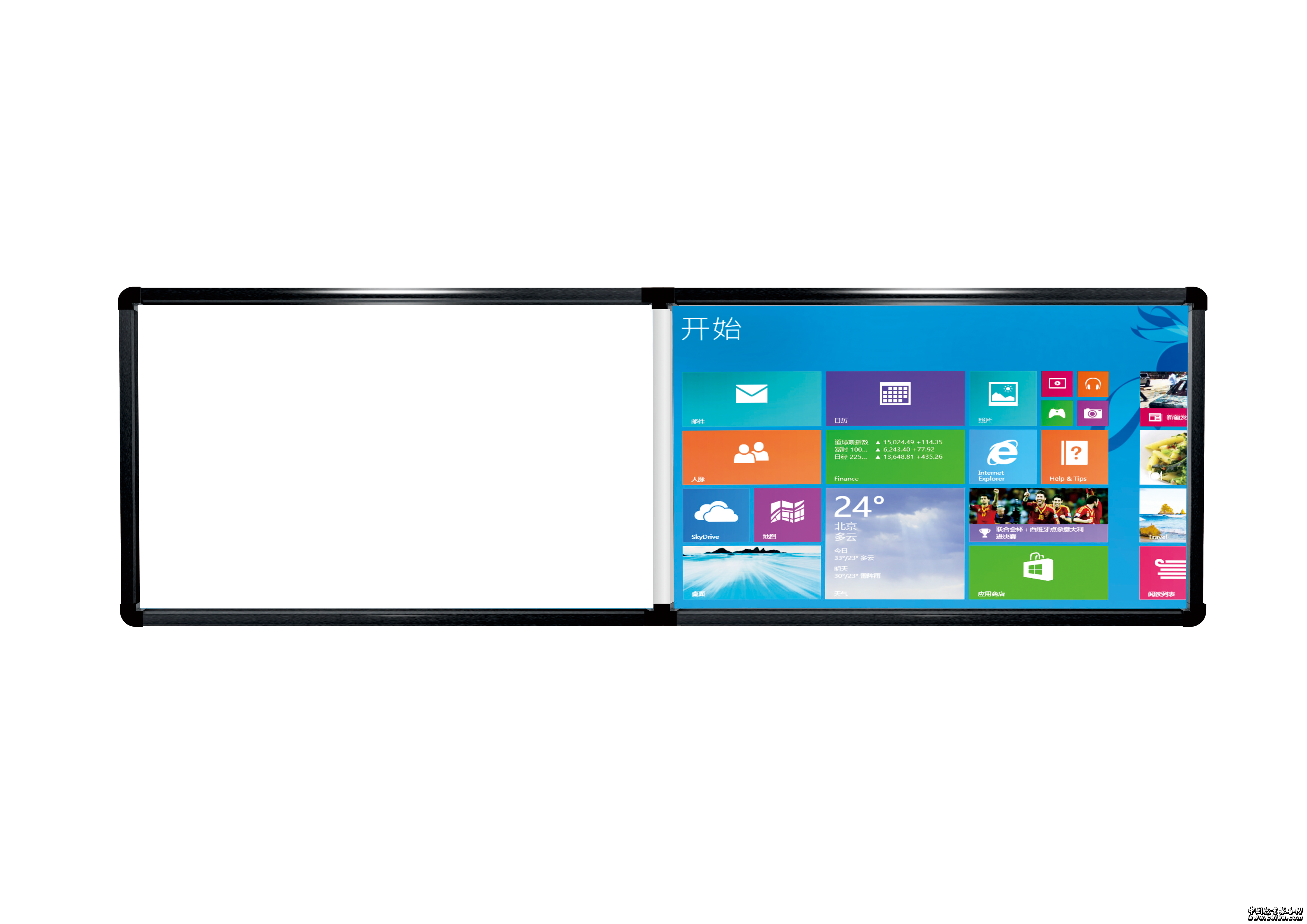 采用兩塊白板拼接方式,一部分作為普通教學(xué)書寫白板,一部分作為互動書寫投影白板,兩部分的材質(zhì)是完全相同的互動部分可根據(jù)客戶需求定制不同尺寸。