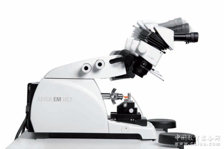 產品詳細介紹 Leica EM UC7超薄切片機是前所未有最簡單最精準的超薄切片機,為光學顯微鏡,透射電子顯微鏡,掃描電子顯微鏡和原子力顯微鏡提供高品質完美的切片。 符合人體工學的外觀設計,內部精密機械設計,直觀的觸摸屏控制面板設計,造就了高品質的Leica EM UC7超薄切片機。http://www.yetech.hk/ 人體工學設計 徠卡顯微系統多項特別的人體工學設計,使得Leica EM UC7具有良好的用戶體驗,通過簡單快速的調節,即可適應不同的用戶。操作舒適度是 Leica EMUC7整體設計目標。配備有Ergo-Wedge適應結構的M80體視顯微鏡,可根據不同使用者的身高和位置調節鏡頭高度和角度。防震臺上設計有兩個肘托,可以調節高度和左右間距,提供手臂的支撐。這些特性加上人體工學的控制系統,即使連續工作數小時也不會感到疲勞。