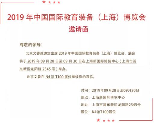 【邀請函】2019年中國國際教育裝備(上海)博覽會