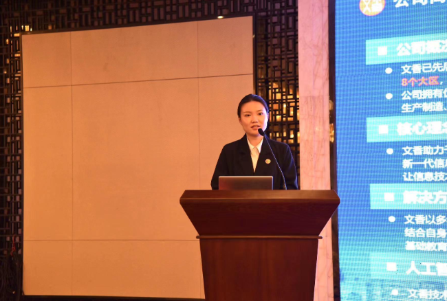 接下來,培訓部金牌講師潘月詳細介紹了本次推出的新品。這些新品不僅在設計上更加時尚、實用,而且在功能上也有了顯著的提升。這些新品充分考慮了用戶體驗和教學需求,為教育事業的發展注入了新的活力。同時人工智能技術的加持,可以讓文香的新品為教育教學帶來了更加個性化、智能化的體驗。這些產品的應用,不僅將推動教育行業的數字化轉型,在教育均衡發展方面也發揮了重要作用,這不僅有助于縮小城鄉教育差距,實現教育公平,也為提升整體教育質量提供了有力支持。