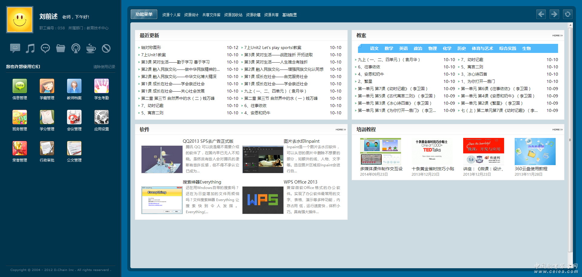 資源管理基礎配置 資源類型自定義設置(樹形菜單的方式)、資源支持的上傳格式的限制設置,對外共享資源類型并生成動態地址設置,個人庫容量大小的設置。 資源共享 主要是將共享的資源進行歸類上傳,設置內容包含資源的標題、資源描述、資源類型、資源共享的范圍等,同時還包含了對自己共享的資源的管理。 資源收藏 查看別人共享的資源,針對好的資源進行收藏,并形成自己的資源收藏庫。 資源回收站 主要用于被刪除的資源,用于資源信息和文件的徹底刪除或者資源恢復。 資源共享文件庫 主要是采用共享類型文件夾及主題文件夾的形式進行資源展示,同時包含了資源的在線預覽(類似百度文庫),文件的打包下載。 資源統計 主要是針對資源分類、資源下載、瀏覽、收藏等進行相應的匯總統計分析,并生成資源統計報表。 資源個人庫 主要針對個人不共享資源的管理,包含個人資源庫類型的設置、個人資源上傳、個人資源分類管理。 |