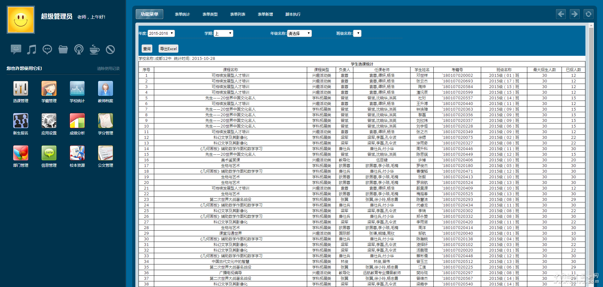 表單類型 采用自定義模式,對表單類型的設置及管理。 表單管理 該功能主要用于添加新的自定義的表單統計,包含了查詢分析條件的設置,該表單針對開放的范圍、該統計對應的表單類型。 腳本執行 該功能主要用于執行技術編寫的表單的存儲過程、函數等SQL腳本信息。 表單統計 包含了生成html的統計報表、Excel的統計報表、Word的統計報表、圖形報表(柱形、線形、柱線結合、餅形、條形)。 內部數據轉化機制 主要用于生成對應的html或者圖形報表的數據格式。 |