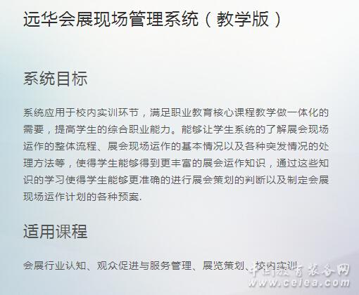 適用課程 會展行業(yè)認知、觀眾促進與服務管理、展覽策劃、校內實訓. |