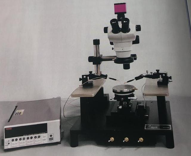 型號 技術(shù)參數(shù) MPS-4 MPS-6 臺 體 尺寸 4英寸 6英寸 水平旋轉(zhuǎn) 可360度旋轉(zhuǎn),可微調(diào)15度,精度0.1度,帶角度鎖死裝置 X-Y移動行程 2英寸*3英寸 X-Y移動精度 10微米 樣品固定 真空吸附,中心吸附孔,多圈吸附環(huán) 針座平臺 左右各一個針座平臺,最多可放置6個探針座 背電極測試 樣品臺電學(xué)獨立懸空,4mm插孔可接背電極 顯 微 鏡 顯微鏡類型 單筒顯微鏡/體視顯微鏡 放大倍率 16X-200X 移動行程 水平方向繞立柱360度旋轉(zhuǎn),Z軸50.8mm 光源 外置LED無極調(diào)節(jié)亮度環(huán)形光源 CCD 200萬像素/500萬像素/1200萬像素 探 針 座 X-Y-Z移動行程 12mm*12mm*12mm 移動精度 10微米/2微米/0.7微米/0.5微米 吸附方式 磁力吸附/真空吸附 探 針 夾 具 線纜 同軸線/三軸線 漏電精度 10pA/100fA/10fA 固定探針 彈簧固定/管狀固定 接頭類型 BNC/三軸/香蕉頭/鱷魚夾/接線端子 探 針 針尖直徑 0.2微米/1微米/2微米/5微米/10微米/20微米 材質(zhì) 鎢鋼/鈹銅 外形 400mm長*380mm寬*500mm高 重量 約20千克 可選附件 加熱臺 屏蔽箱 顯示器 光學(xué)平臺 轉(zhuǎn)接頭 鍍金卡盤 射頻測試配件 光電測試配件 根據(jù)客戶要求定制 |