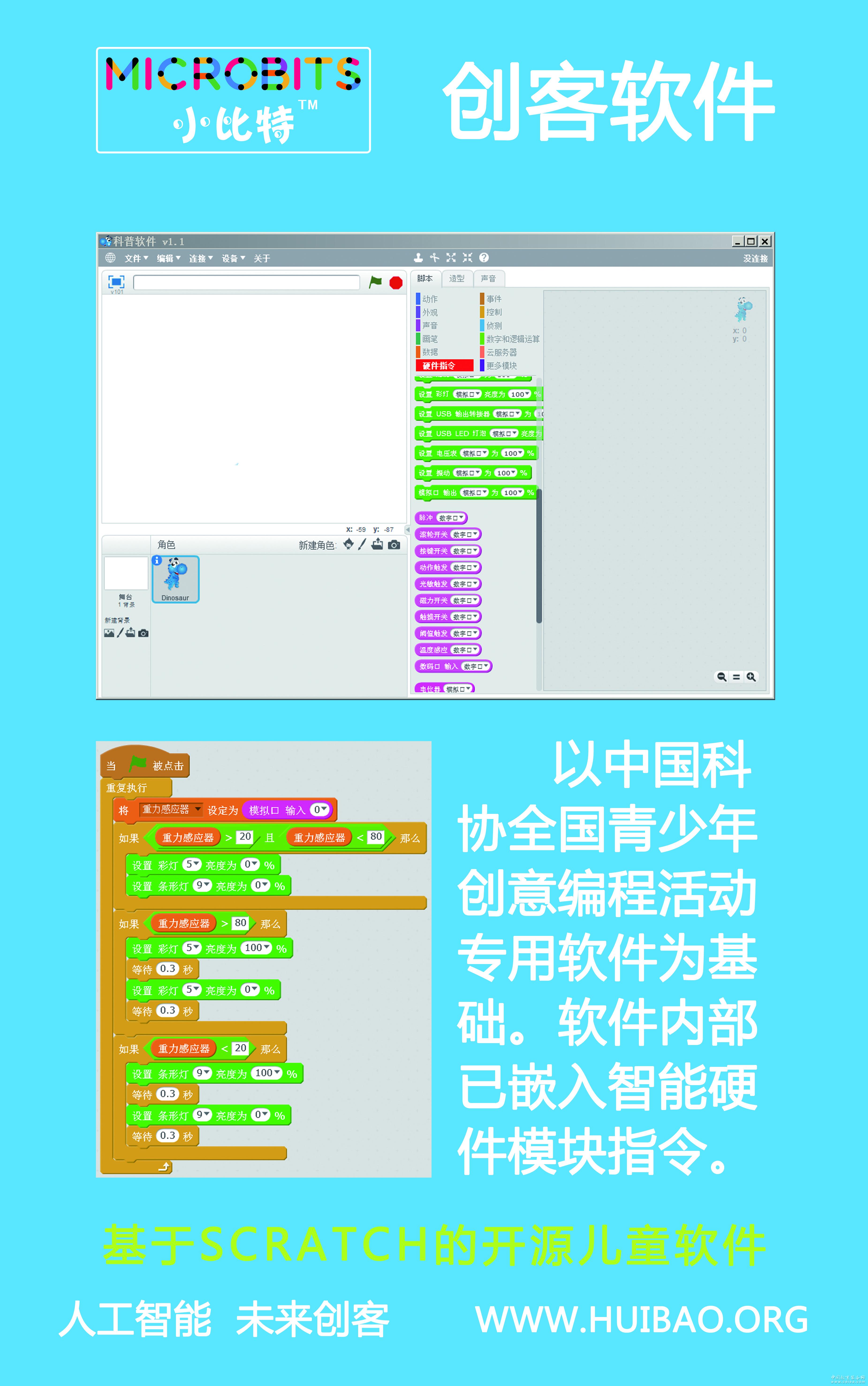 一、研發(fā)理念 2017年,國(guó)務(wù)院印發(fā)的《新一代人工智能發(fā)展規(guī)劃》明確提出:“實(shí)施全民智能教育項(xiàng)目,在中小學(xué)階段設(shè)置人工智能相關(guān)課程,逐步推廣編程教育......”在科技部、北京市科委等部門指導(dǎo)下,我公司研發(fā)的《人工智能》課程以STEAM教育理念為指導(dǎo),以工程機(jī)械原理為基礎(chǔ),以智能電子技術(shù)應(yīng)用為主體,以創(chuàng)意編程為方向,以未來(lái)創(chuàng)客為培養(yǎng)目標(biāo)。 二、課程說(shuō)明 本套課程由標(biāo)準(zhǔn)化教材、器材套件、專用軟件、模型搭建視頻及圖紙、課程相關(guān)圖片等教學(xué)課件組成,教學(xué)資料完備,解決了教師備課的困擾。智能模塊可以將復(fù)雜的聲、光、電等物理現(xiàn)象通過(guò)磁吸積木方式直觀呈現(xiàn),也可借助基于Arduino的配套主板和基于Scratch的圖形化軟件,通過(guò)編程方式來(lái)實(shí)現(xiàn)復(fù)雜的智能控制。課程設(shè)計(jì)適合零基礎(chǔ)起點(diǎn)的學(xué)生和成人,從智能模塊的應(yīng)用到創(chuàng)意編程的學(xué)習(xí),實(shí)現(xiàn)智能模塊-創(chuàng)意編程-智能控制的培養(yǎng)路徑。 三、適用對(duì)象 課程內(nèi)容普遍適用于中小學(xué)、科技館、少年宮、培訓(xùn)機(jī)構(gòu)、活動(dòng)中心、師資培訓(xùn)中心等。中小學(xué)可結(jié)合計(jì)算機(jī)、綜合實(shí)踐、科學(xué)、物理等學(xué)科開設(shè)本課程,或獨(dú)立開設(shè)電子創(chuàng)客課程。《編程套裝》產(chǎn)品的編程主板和軟件均為開源設(shè)計(jì),方便初學(xué)者和零基礎(chǔ)的學(xué)生使用,適合中小學(xué)電子創(chuàng)客基礎(chǔ)性普及教育,學(xué)校開設(shè)起始年級(jí)建議為小學(xué)三年級(jí)以上。 四、產(chǎn)品構(gòu)成 本套課程產(chǎn)品由標(biāo)準(zhǔn)化教材兩冊(cè)(2018年升級(jí)為四冊(cè))、零件圖卡、器材零件142種582個(gè)(包含常用智能模塊)、400分鐘模型搭建視頻及圖片課件等組成。教材課時(shí)總量40課,課時(shí)建議40-60分鐘。 |