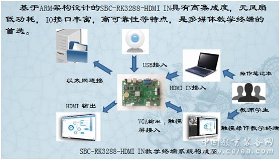 產(chǎn)品詳細(xì)介紹 深圳市聚蕓智能科技有限公司針對(duì)電子多媒體教學(xué)系統(tǒng)開(kāi)發(fā)基于瑞芯微RK3288 CPU為基礎(chǔ)的支持HDMI IN攝像機(jī)及HDMI IN PC源輸入的多媒體教學(xué)終端-SBC-RK3288-HDMI IN主機(jī)。 SBC-RK3288-HDMI IN主機(jī)替代了傳統(tǒng)的商業(yè)計(jì)算機(jī),提供PC的HDMI源信號(hào)接入,方便不同教師的筆記本電腦接入,同時(shí)也可以通過(guò)USB連接U盤(pán)或以太網(wǎng)連接服務(wù)器下載教學(xué)資料以便課堂使用;通過(guò)USB高清攝像頭接入主機(jī),方便課堂教學(xué)視頻拍攝;另外,主機(jī)通過(guò)多種顯示輸出接口,分別連接講臺(tái)觸摸顯示器以及面對(duì)學(xué)生的教學(xué)電視,分別輸出不同畫(huà)面,達(dá)到操作界面和顯示界面同時(shí)運(yùn)行,互不干擾。 隨著ARM 產(chǎn)品性能的大幅提升以及安卓操作系統(tǒng)應(yīng)用軟件的極大豐富,采用SBC-RK3288-HDMI IN主機(jī)的多媒體教學(xué)終端得到廣泛的應(yīng)用。具有穩(wěn)定可靠的硬件系統(tǒng),友好的人機(jī)界面,專(zhuān)業(yè)化的行業(yè)定制應(yīng)用,高性價(jià)比的SBC-RK3288-HDMI IN主機(jī)是構(gòu)建多媒體教學(xué)終端系統(tǒng)的不二之選。