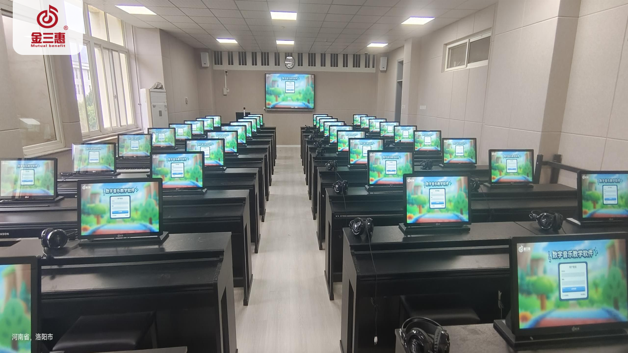 2023年8月,金三惠數字音樂教室為河南省洛陽市推拿職業學院提供、安裝、培訓的40+1智慧創客音樂教室正式開始使用!配備了金三惠教學系統、電鋼琴、數字音樂教學儀等教學教具。