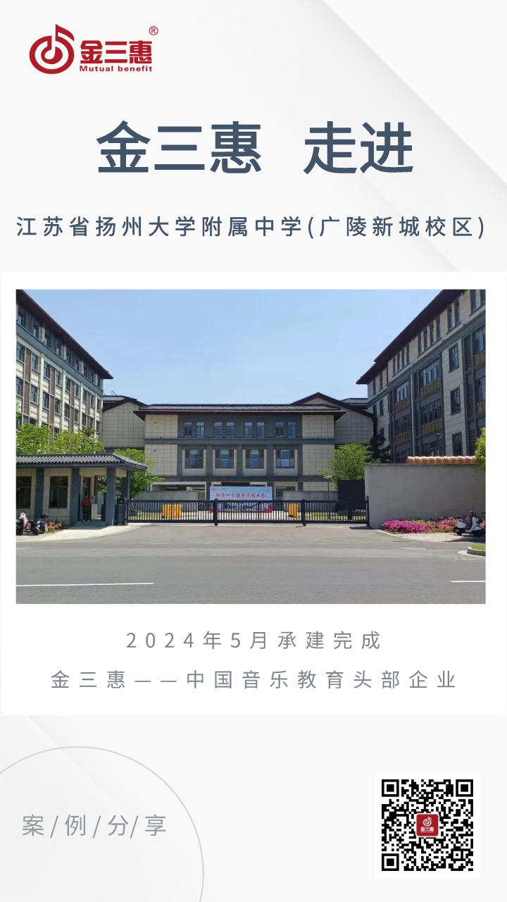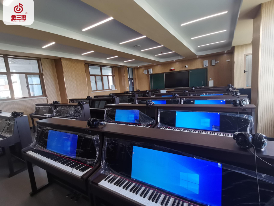 2024年5月,金三惠數(shù)字音樂教室為江蘇省揚州大學附屬中學(廣陵新城校區(qū))提供、安裝、培訓的24+1智慧音樂素養(yǎng)教室正式開始使用!配備了金三惠教學系統(tǒng)、電鋼琴、數(shù)字音樂教學儀等教學教具。