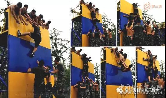 最后一個項目,就是重頭戲“畢業(yè)墻”,全隊需要不借助任何工具,翻越4.2米高的光滑鐵墻,要求所有人員必須全部翻過,才算勝利。
