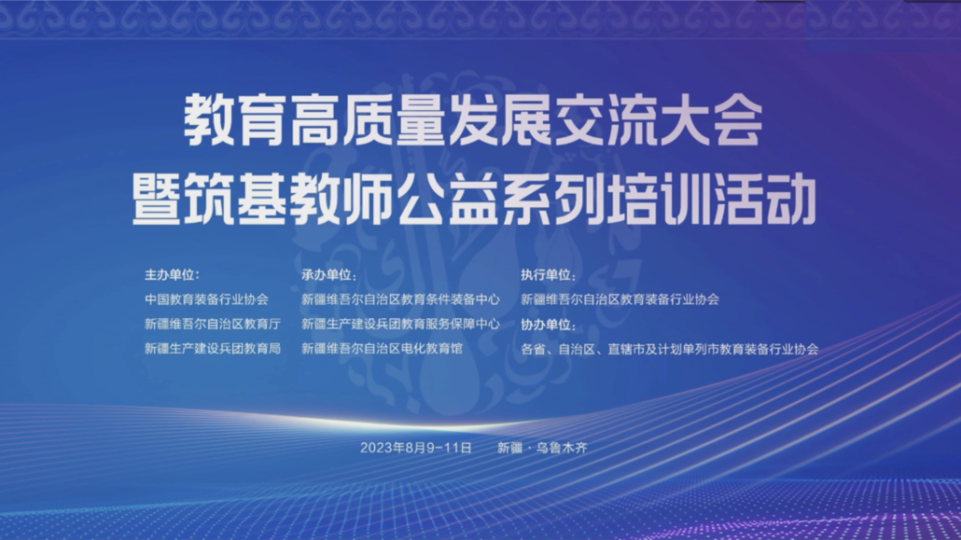 2023年8月9日,由中國教育裝備行業(yè)協(xié)會(huì)、新疆維吾爾自治區(qū)教育廳、新疆生產(chǎn)建設(shè)兵團(tuán)教育局主辦的教育高質(zhì)量發(fā)展交流大會(huì)暨筑基教師公益系列培訓(xùn)活動(dòng)在新疆醫(yī)科大學(xué)成功舉辦。新疆教育部、各省教育廳相關(guān)領(lǐng)導(dǎo),各省市教育裝備、電化教育館等有關(guān)部門負(fù)責(zé)人;各省市教育裝備行業(yè)協(xié)會(huì)相關(guān)負(fù)責(zé)人;以及各省市中小學(xué)校負(fù)責(zé)人、各學(xué)科教師等人員參加此次會(huì)議共同研討教育領(lǐng)域最新的技術(shù)和裝備,助力教師提升教學(xué)技能,促進(jìn)提升教學(xué)質(zhì)量。