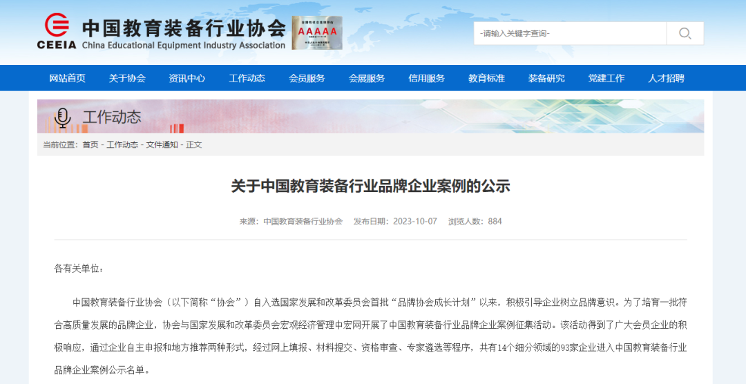 中國教育裝備行業(yè)協(xié)會(以下簡稱“協(xié)會”)自入選國家發(fā)展和改革委員會首批“品牌協(xié)會成長計劃”以來,積極引導(dǎo)企業(yè)樹立品牌意識。為了培育一批符合高質(zhì)量發(fā)展的品牌企業(yè),協(xié)會與國家發(fā)展和改革委員會宏觀經(jīng)濟管理中宏網(wǎng)開展了中國教育裝備行業(yè)品牌企業(yè)案例征集活動。