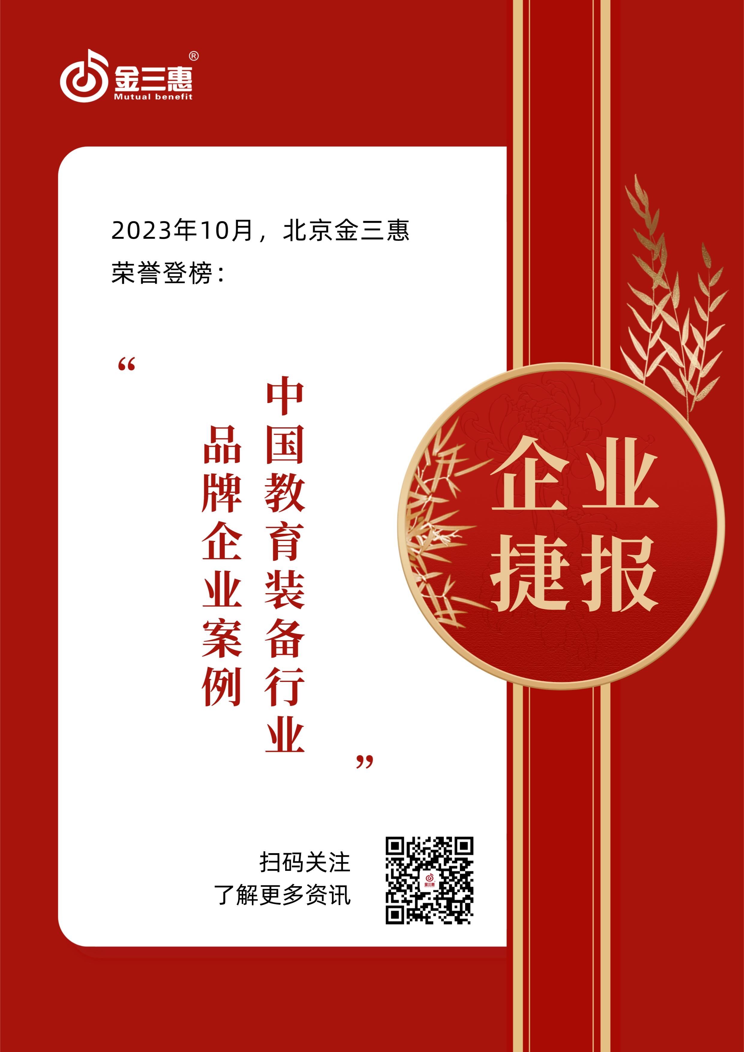 10月7日,中國教育裝備行業(yè)協(xié)會公示“中國教育裝備行業(yè)品牌企業(yè)案例公示名單”,北京金三惠成功入圍該名單。