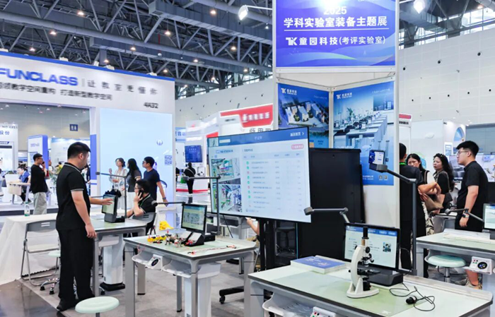 展會期間,童園科技展位人氣爆棚,專業技術人員現場演示了考評系統如何高靈敏度地精準捕捉實驗操作細節,以及AI如何依托強大算法和深度學習模型,在操作完成的瞬間快速、客觀、公正地生成評分結果。這種高效、精準、去人工化的創新模式,贏得了現場觀眾的陣陣贊嘆和高度認可。一致的認為科技與教育的融合正在重塑教育裝備產業的發展格局,推動教育模式向個性化、智能化、精準化方向深度變革。