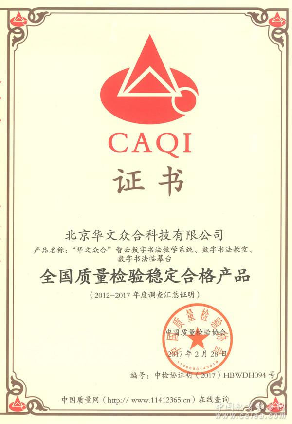 近日,華文眾合獲得了由中國質量檢驗協會頒發的”全國質量檢驗穩定合格產品“證書,這是對華文眾合產品質量的又一權威肯定。