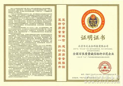 日前,在國家質檢總局和中國質量檢驗協會主辦的“產品和服務質量誠信承諾”活動中,質檢總局產品質量申訴處理中心特別樹立了100家質量誠信標桿示范企業,北京華文眾合科技有限公司榮立“全國百佳質量誠信標桿示范企業”之列。