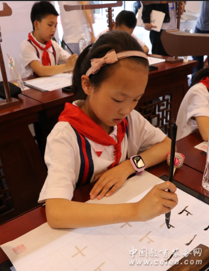 成都市百草園小學四年級學生體驗華文眾合“智云+”數字書法教室
