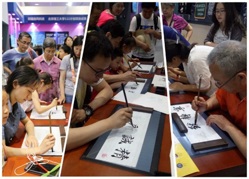 5月19日,華文眾合數字書法教室出展第一天就榮登北京科技周官方微信報道榜單。展出期間,華文眾合數字書法教室展位吸引了眾多慕名而來的參觀體驗者,同時也受到了家長朋友、展商朋友、軍人、外國友人、退休老人、學生、小朋友等各職業各年齡段體驗者的一致好評。小朋友非常樂意坐好靜下心來寫一幅自己滿意的書法作品,這一切緣于“數字書法”的魅力。
