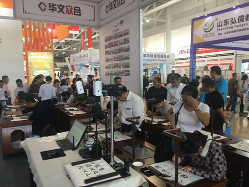 2018年9月28日至30日,由山東省教育廳、臨沂市政府主辦的“2018山東省教育裝備博覽會”在臨沂國際博覽中心舉行。國內首家書法教育云平臺、國家高新技術企業——北京華文眾合科技有限公司攜最新一代智慧書法教室整體解決方案隆重亮相,本屆展會華文眾合推出的“多模教學”成為展會的一大熱點,展會現場前來體驗的觀眾絡繹不絕,紛紛表示出極大的興趣。
