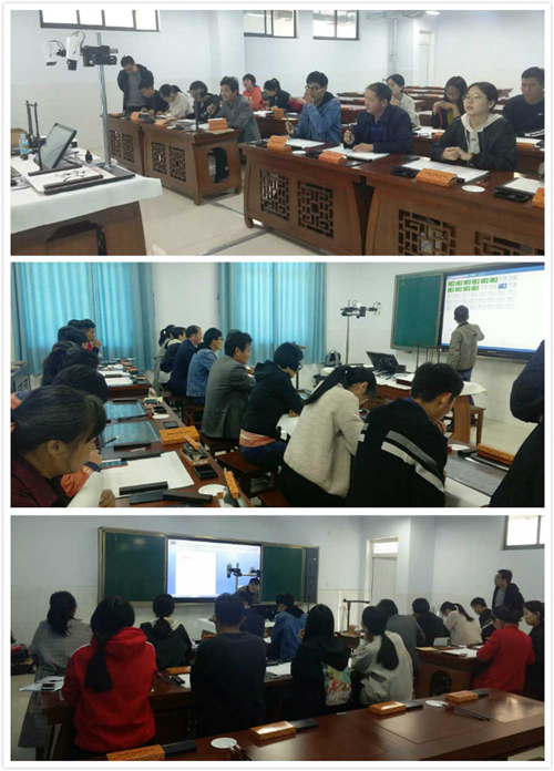 費縣崇文學校老師在使用華文眾合智慧書法教室進行書法培訓
