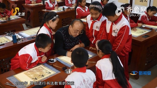 一張白紙,一桿瘦筆,一本《書笙墨韻》,一曲《龍文》體操。這是淄博市淄川經濟開發區中心小學呈現的“四個一”書法特色教育。