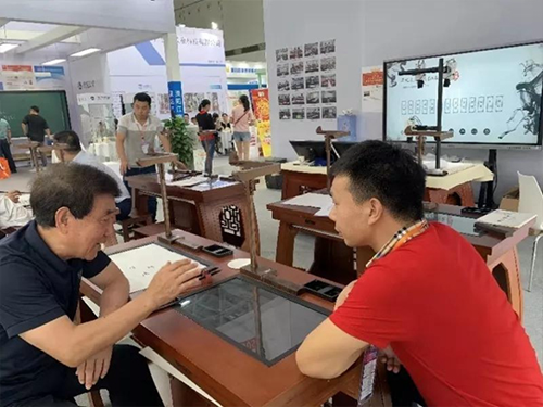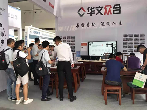 《中小學(xué)智慧書法教室裝備規(guī)范》團體標(biāo)準(zhǔn)的牽頭制定單位華文眾合參加了此次展示會,并展出最新產(chǎn)品——第五代智慧書法教室,受到大批觀眾的喜愛。展示會期間,多位行業(yè)協(xié)會領(lǐng)導(dǎo)蒞臨華文眾合展位進行參觀指導(dǎo)。