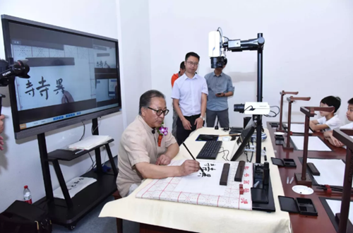 開幕式期間,舉行了高軍法書法匯報展研討會,來自美術界、評論界的各界人士對高軍法作品進行深入探討交流并給予高度評價。隨后,高軍法運用華文眾合智慧書法教室,演繹“書法五步教學法”,與現場觀眾及學生進行交流互動。