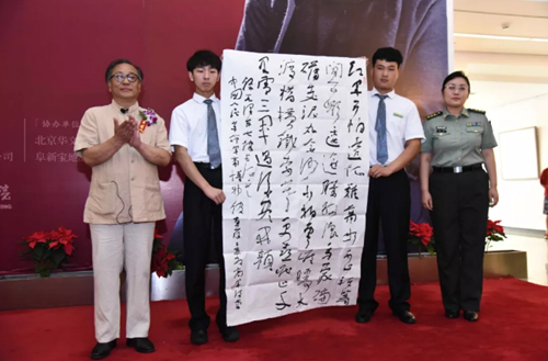 高軍法在答謝辭中表示,自己是懷著感恩激動的心情向人民、向社會匯報書法創作成果,也是一次與同仁切磋藝術的機會。從軍40年,寫字50年,今天展覽的81件作品,是他贊頌新時代、激勵新征程,為建軍92周年和建國70周年獻上的一份祝福。