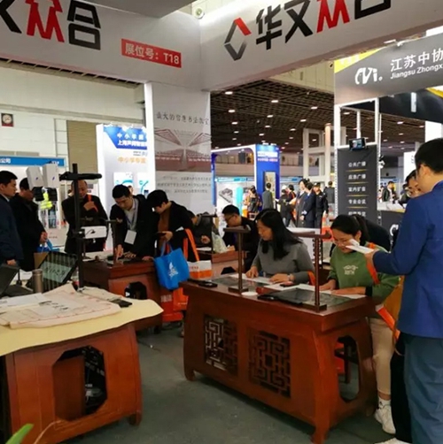 11月15日,2019中國未來教育與智慧裝備展示會在南京國際展覽中心隆重開幕。華文眾合攜智慧書法教室參展,吸引大批觀眾駐足體驗。