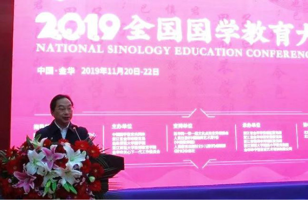 11月21日,由中國國學教育共同體、浙江省金華市教育局、曲阜師范大學國學院、浙江師范大學教師教育學院、金華市關心下一代工作委員會主辦的“2019全國國學教育大會”在婺城金華隆重舉行。原文化部副部長潘震宙,中國留學發展人才基金會漢學研究院院長張健,孔子七十五代孫、世界儒學大會秘書長、中國孔子研究院副院長孔祥林,教育部原國家督學、教育部《中小學書法教育指導綱要》研制組專家、華文眾合書畫研究院專家張鳳民等領導出席會議,來自全國12個省的280余名國學教育專家學者共同參會。