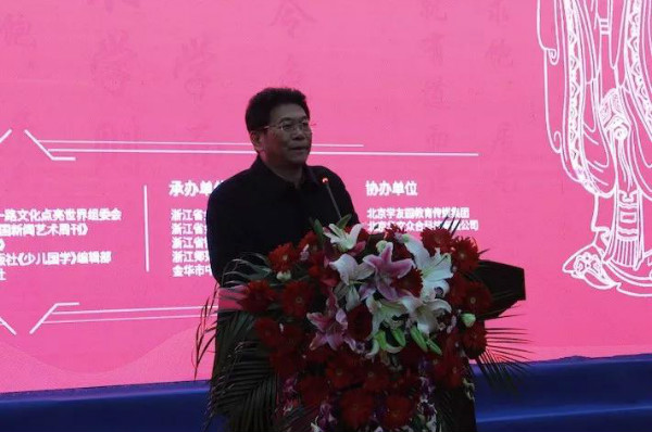 金華市教育局黨委書記、局長樓偉民致歡迎辭。樓偉民表示,早在2010年,金華就在全市中小學生中開展“讀國學經典,做道德少年”活動,今年全市教育工作會議又提出了要推動國學教育“普及化”。懇請所有參會人員齊心協力,群策群力,共同打造全國國學教育交流大平臺。