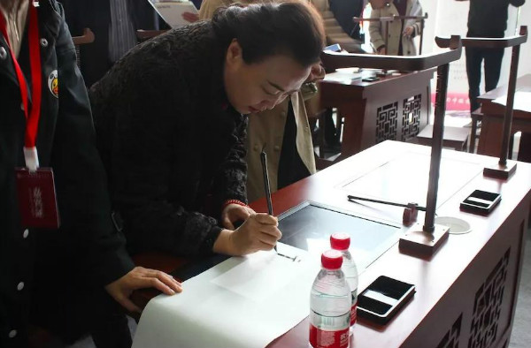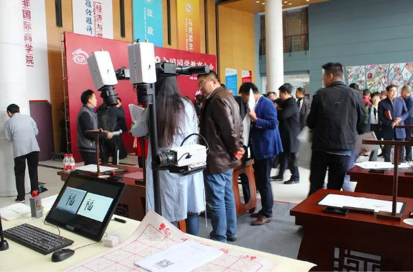 作為國學精粹的傳統書法文化是此次會議的熱門議題,會議期間展出了華文眾合第六代智慧書法教室。參會領導及嘉賓駐足參觀、體驗,興致高昂。