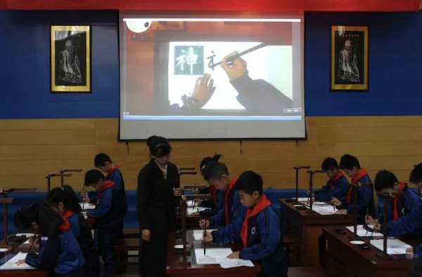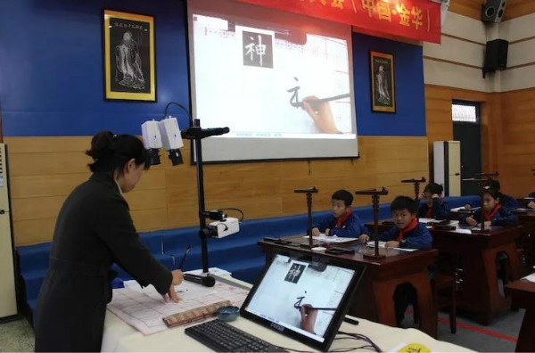 22日上午,2019全國國學教育大會分論壇——智慧書法論壇在浙江師范大學附屬小學教育集團舉行,浙師大附小教育集團中圣學校的程靜老師和孩子們利用華文眾合智慧書法教室為大家展示書法觀摩課。