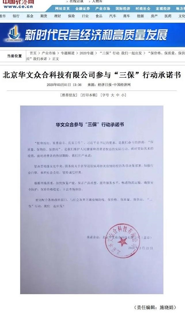 華文眾合積極響應國家號召,成立公司疫情預防領導小組,宣貫抗疫防范措施,跟蹤員工健康狀況,按國家、北京市規定延遲復工時間,提醒員工自覺做好居家隔離等防控工作。