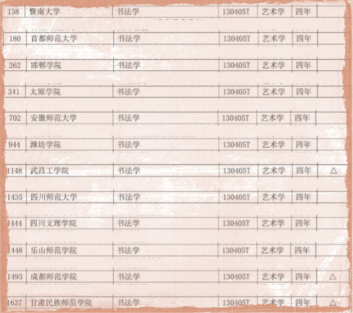 這12所學校基本涵蓋了華北、華中、華南、西南、西北等地區,其中四川省最是來勢洶洶,一口氣來了四所大學都上了書法學。
