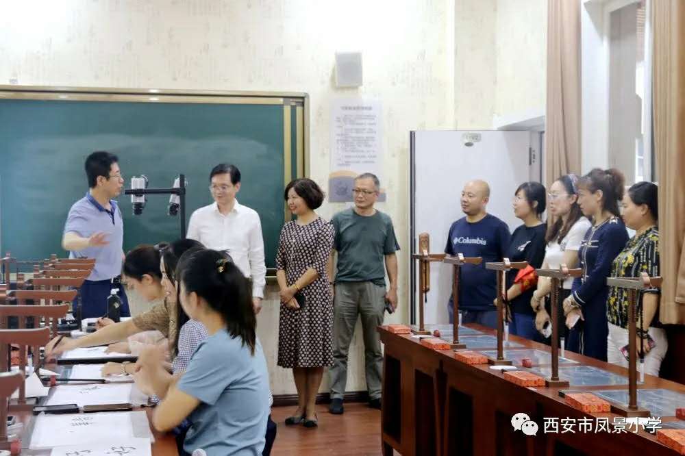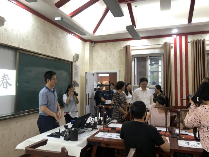 西安市教育局黨委書(shū)記、局長(zhǎng)姜建春實(shí)地調(diào)研了校園文化整體建設(shè)情況,參觀了智慧書(shū)法教室,深入感受文化氛圍,在智慧書(shū)法教室,姜建春詢問(wèn)了教師使用新設(shè)備的熟練程度,并饒有興趣的和老師們一起進(jìn)行了操作。同行各位代表認(rèn)真學(xué)習(xí)、拍攝記錄,對(duì)華文眾合智慧書(shū)法教育設(shè)備表示高度認(rèn)可。