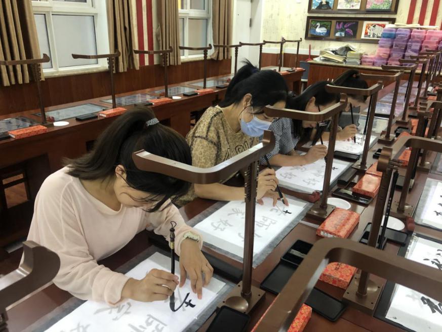 以傳統(tǒng)為基礎(chǔ),華文眾合智慧書(shū)法教室秉承“傳統(tǒng)與科技融合,而不摒棄傳統(tǒng)”的理念,采用傳統(tǒng)的毛筆、墨汁和宣紙進(jìn)行教和學(xué),避免水寫(xiě)、電子模擬等書(shū)寫(xiě)體驗(yàn)給學(xué)生造成不良影響。學(xué)生從最初學(xué)、練書(shū)法開(kāi)始,從始至終都使用筆墨紙,養(yǎng)成一致的筆觸感,脫離平常練習(xí)的教室也能使用筆墨紙寫(xiě)出漂亮的毛筆字。