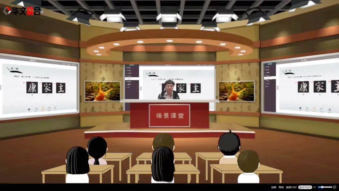 通過場景技術讓網絡課堂達到名師面對面”以及不同地域學生天涯若同堂的效果。
