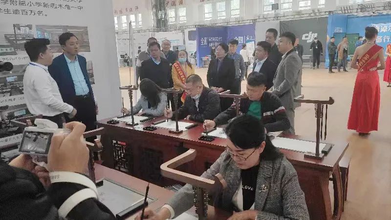 巴彥淖爾市工商聯主席張秀文、市科協主席格日樂、市教育局副局長李云生、市科協劉希廷部長及所有參會人員到金川學校體育館參觀了巴彥淖爾市教育裝備行業協會舉辦的巴彥淖爾市首屆教育裝備展示會,華文眾合作為國內智慧書法教育裝備領軍品牌,在本次教育裝備展示會上展示了智慧書法教育信息化的前沿產品,展現了深度融合前沿科技與傳統書法教育的理念。