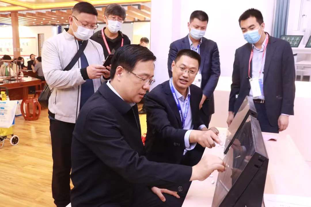 中國教育裝備行業協會副會長夏國明參觀體驗華文眾合智慧粉筆教室