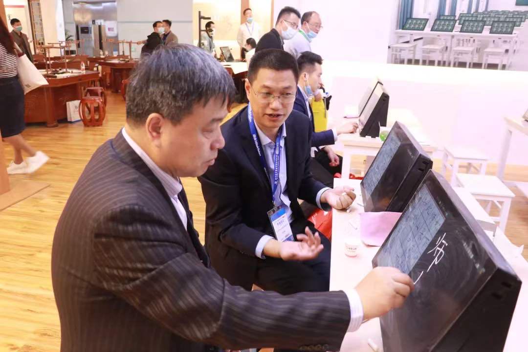 北京市教育裝備行業協會會長柴旭津體驗華文眾合智慧粉筆教室