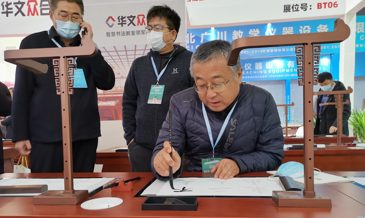 華文眾合最新推出的第七代智慧書法教室,首次在西部地區(qū)亮相,寧夏回族自治區(qū)財(cái)政廳馬處長及寧夏教育裝備行業(yè)協(xié)會(huì)會(huì)長黃樺親臨華文眾合展會(huì)參觀并與華文眾合副總裁陳方義進(jìn)行了親切的指導(dǎo)交流,寧夏教育裝備和校園風(fēng)險(xiǎn)管理中心主任侯慶偉也前來體驗(yàn)了首次亮相寧夏的第七代智慧書法教室。不少前來參展的朋友表示“早已聽說過華文眾合第七代智慧書法教室的新概念,這次華文眾合終于來到寧夏銀川讓我們一睹新技術(shù)新風(fēng)采!