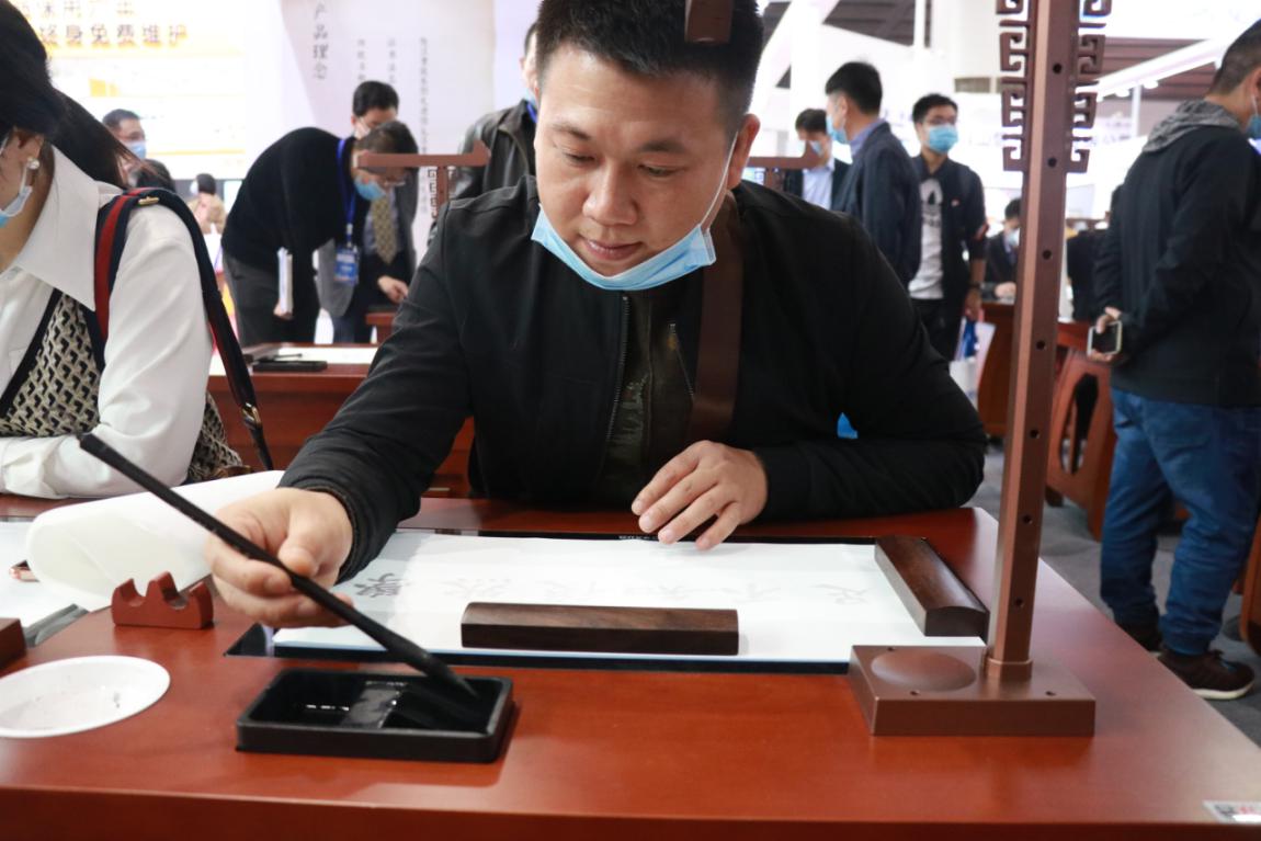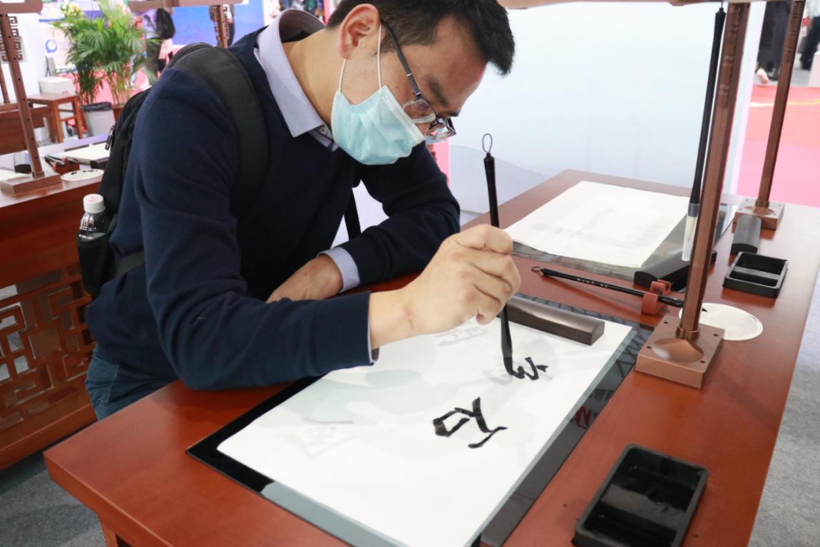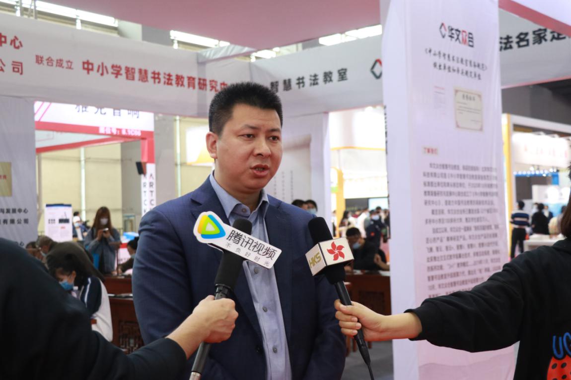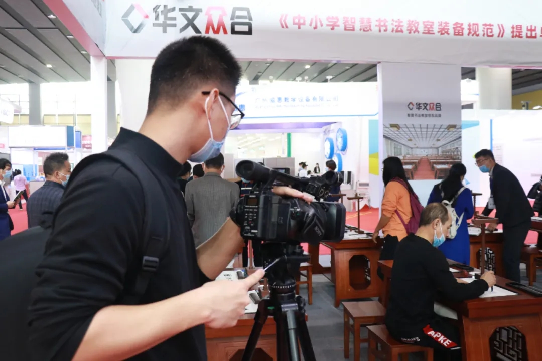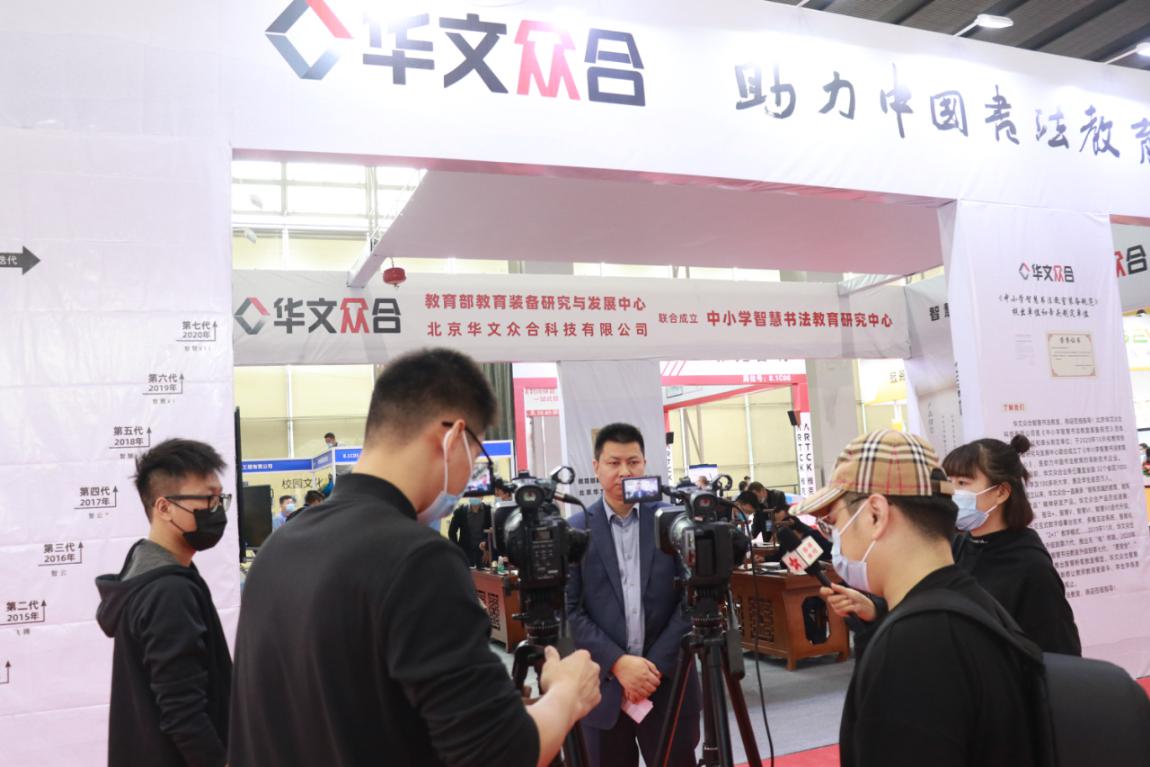 憑借著前沿的技術與出色的產品,華文眾合智慧書法教室吸引了眾多參觀者的熱議與駐足。展會現場,華文眾合副總裁陳方義接受了新華網、香港衛視、廣州日報、騰訊視頻等多家媒體記者的采訪,分享、闡述華文眾合對智慧書法教育產業發展的理解與思考。