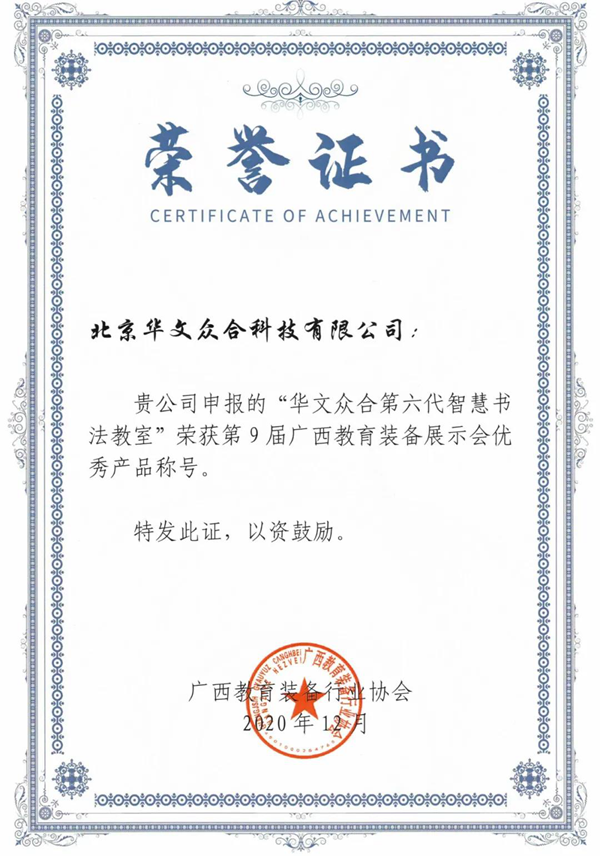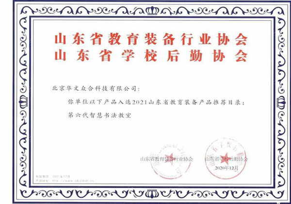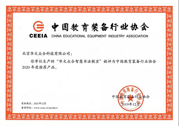 “華文眾合智慧書法教室”被評(píng)為中國教育裝備行業(yè)協(xié)會(huì)2020年度推薦產(chǎn)品