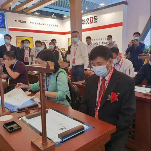 2021年10月,第八代智慧書法教室在第80屆中國教育裝備展示會上如期而至,憑借新產品、新技術、新細節,收獲領導們、合作伙伴們、用戶們的支持與肯定。