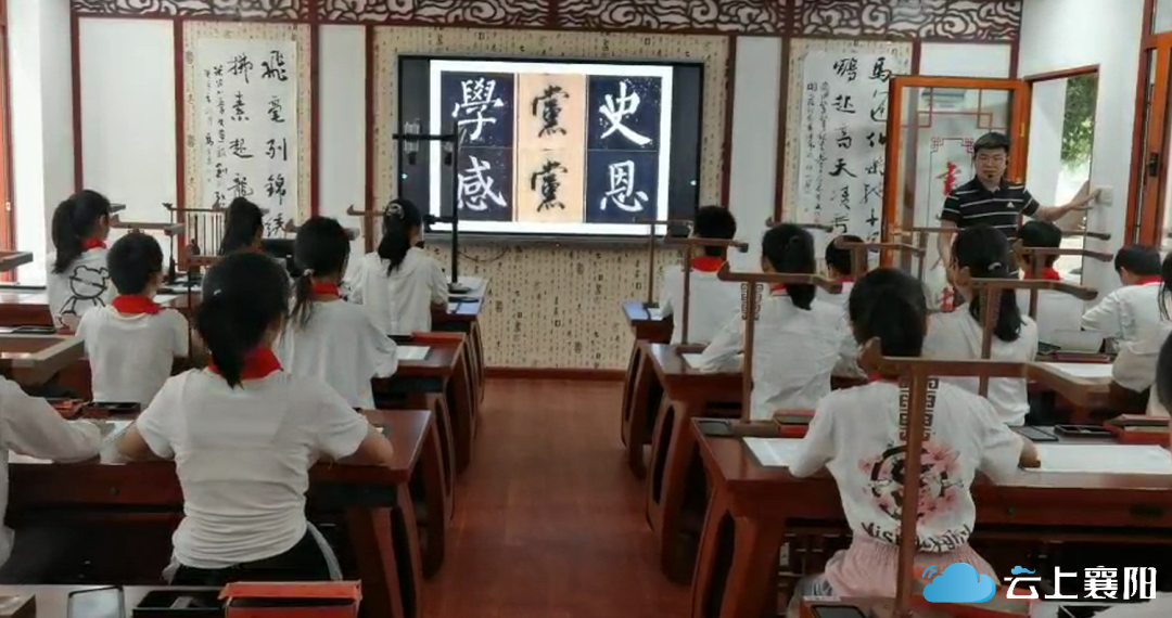 米公小學書法教師萬開平介紹,這是襄陽第一家智慧書法教室,和傳統字帖相比,老師不再需要買來一本本字帖發給學生,智慧書法教室具有直播功能,老師示范時,每個學生都可以直觀看到操作步驟。平時學生老師都可以在里面學習,非常便利。