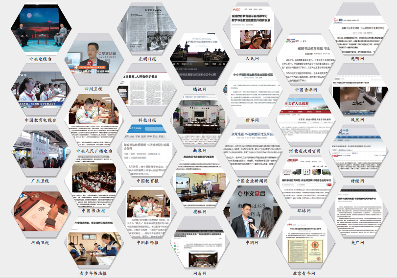 中央電視臺、中國教育電視臺、中央人民廣播電臺、光明日報、中國日報、科技日報、大眾日報、中國教育報、中國教師報、中國書法報、青少年書法報、中國網(wǎng)、人民網(wǎng)、央廣網(wǎng)、新華網(wǎng)、環(huán)球網(wǎng)、財經(jīng)網(wǎng)、中國廣播網(wǎng)、中國青年網(wǎng)、新浪、搜狐、網(wǎng)易、騰訊、廣東衛(wèi)視、四川衛(wèi)視、重慶衛(wèi)視、湖北衛(wèi)視、河南衛(wèi)視、江西衛(wèi)視、寧夏衛(wèi)視、青島電視臺、河北省政府官網(wǎng)等100多家媒體對華文眾合進(jìn)行多次報道。