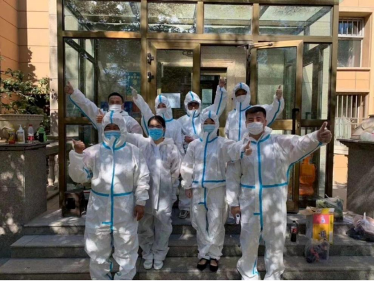 2022年下半年新疆疫情形勢嚴峻,傳播速度快、涉及面廣、感染人數多、防控難度大,牽動著全國人民的心。華文眾合新疆辦的同事用樂觀強大的態度積極“戰疫”,還自發加入到志愿者的隊伍當中去。物資供應、核酸檢測、測量體溫、收集垃圾......環大飛三個人的志愿團隊要為六百多人做好這些服務工作。更值得一提的是,環大飛依然完成了222業務動態,保持著與客戶的電話溝通;夜深人靜的時候,開始安靜地準備各種應標文件、合同......