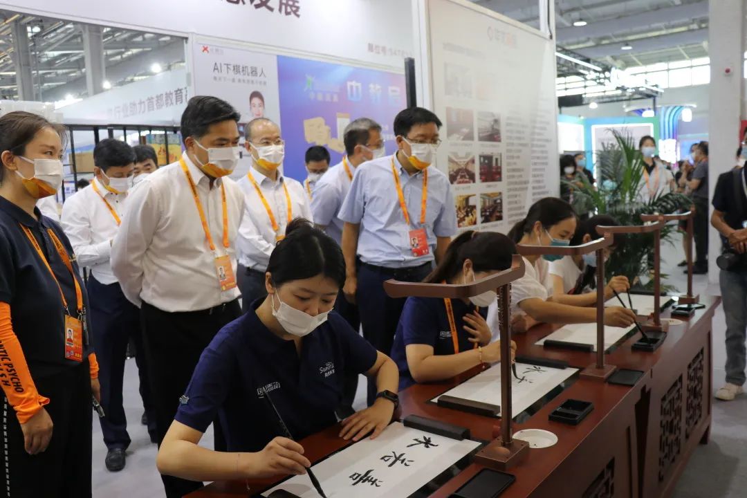 2022中國國際服務貿易交易會9月1日在北京舉辦,中央政治局常委蔡奇,商務部黨組成員、副部長盛秋平蒞臨華文眾合展位,“助力中國書法教育,弘揚中華傳統文化”,華文眾合的理念和創新書法教育服務的產品得到了領導的關注,也預示著智慧書法行業在未來將有更大的發展前景。